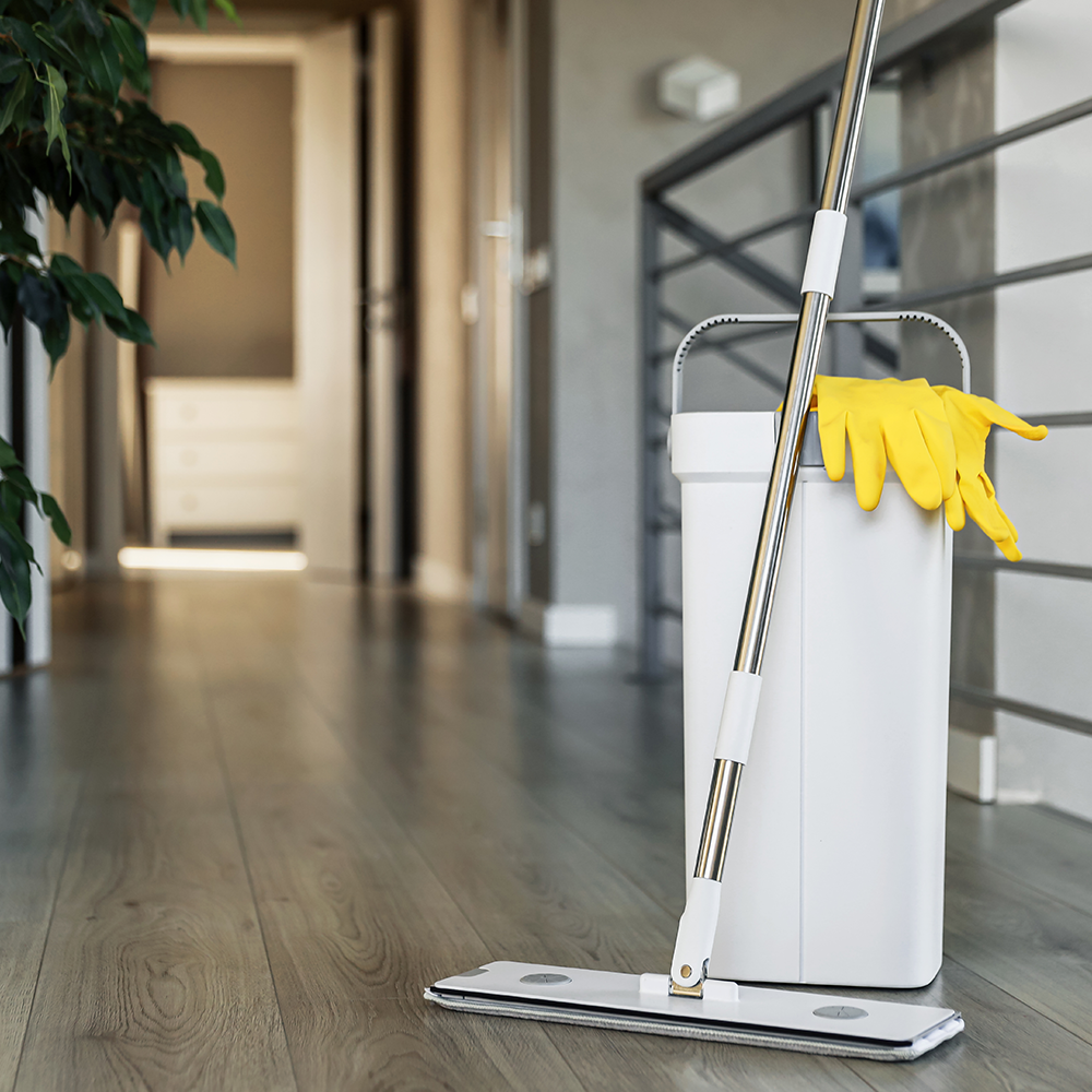 Barrido para eliminación de polvo y partículas, Lavado de productos desinfectante adecuados al tipo de piso (Cerámica, Vinil, Mármol, etc.), Desmanchado y eliminación de grasa o residuos adheridos, Secado y revisión final.